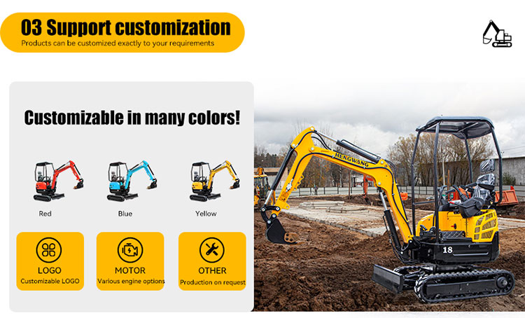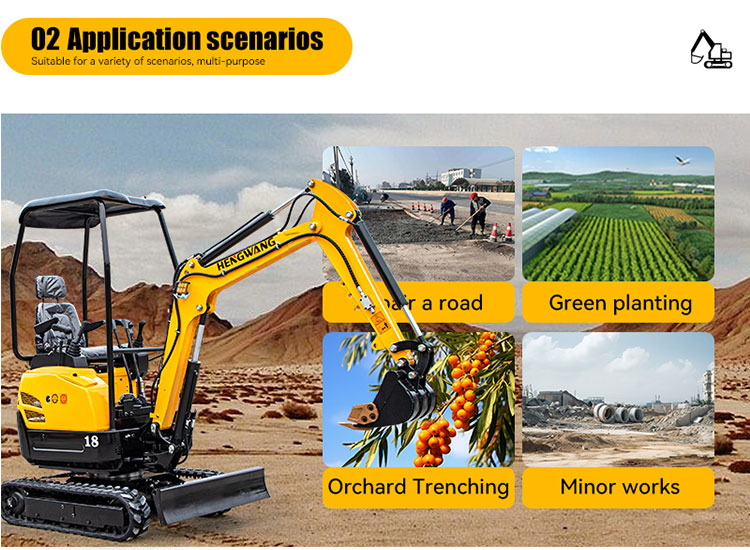 The HW-18W crawler excavator is ideal for tasks such as loosening soil in vegetable greenhouses, landscaping, planting and digging in orchard nurseries, crushing concrete pavements, and conducting construction operations in narrow spaces. Our products are certified by the US EPA.